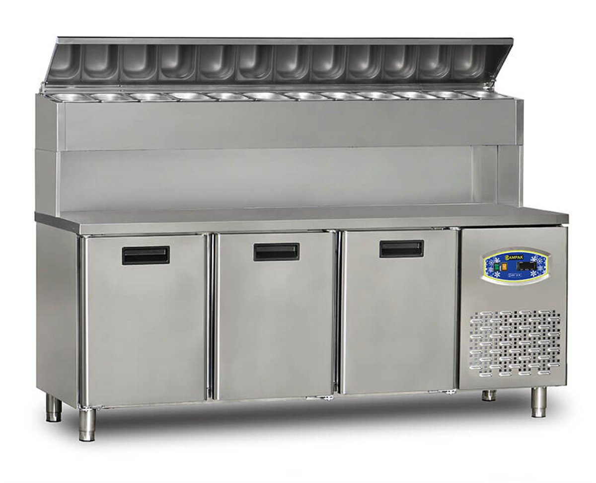 3 Kapılı Tezgah Altı Yüksek Pizza Hazırlık Buzdolabı