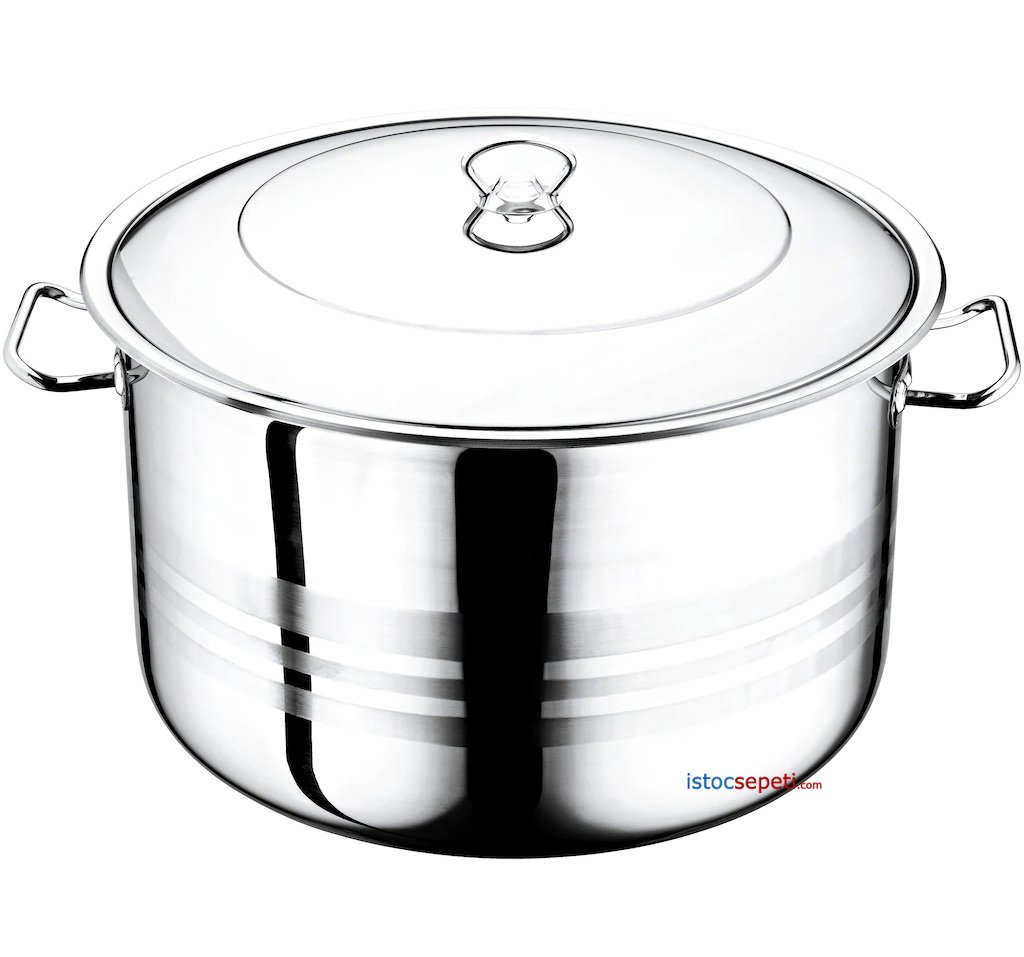 Tabanlı paslanmaz çelik tencere 50 cm ağız çapı, 30 cm derinliği bulunan 50x30 tencere olarak bilinen modeldir.
