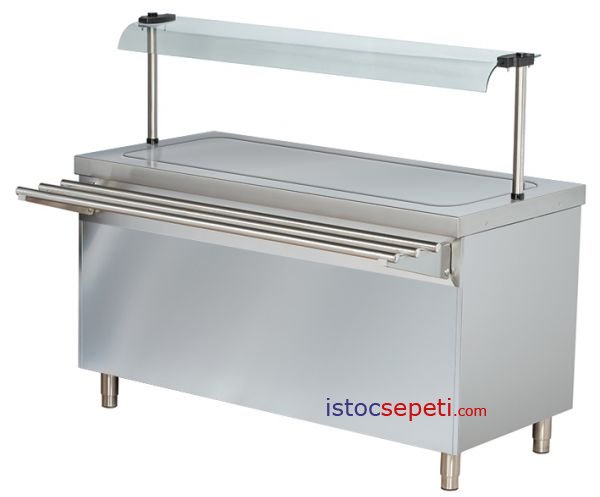 Bu raf kullanım çeşitliliği sunmaktadır, tamamı paslanmaz çelik ile üretilmekte olup üst stand ön kısmı yemek alımını kolaylaştırıcı olması için camlı olarak tasarlanmıştır.