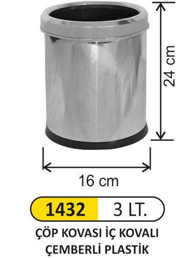 Ofis Tipi Paslanmaz Çöp Kovası 3 LT Çemberli Ofis çöp kovası paslanmaz Çöp kovası 430 kalite paslanmaz çelikten üretilmiştir Çöp kovası plastik iç kovalıdır Çöp kovası çemberlidir. Çöp kovasının ölçüleri 16x24 cm'dir Çöp kovasının hacmi 3 litredir.