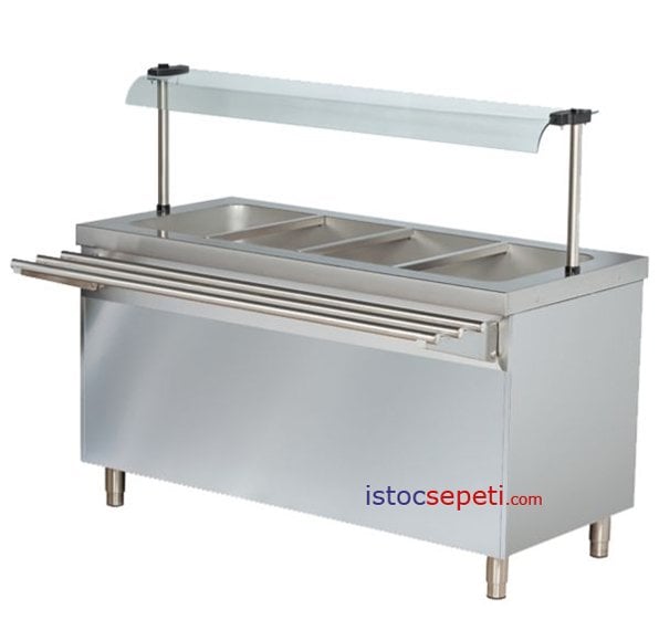 Benmari Altı Sıcak Dolaplı Sıcak Yemek Tezgahı 4 Havuzlu Elektrik ile Çalışan Benmari