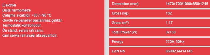 Alt kısmında sıcak dolabı ve rafı bulunan benmari, kullanım çeşitliliği ile de dikkat çekmektedir.