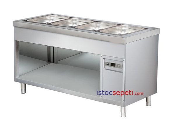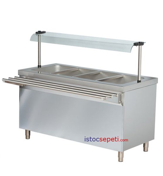 Benmari Sıcak Yemek Self Servis Tezgahı 4 Hazneli Benmari Altı Açık Dolaplı