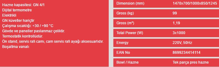 Haznelere, çorba, ana yemek, tatlı ve meyve koyabileceğiniz, tam bir sanayi tipi yemekhane kullanımları için uygundur.