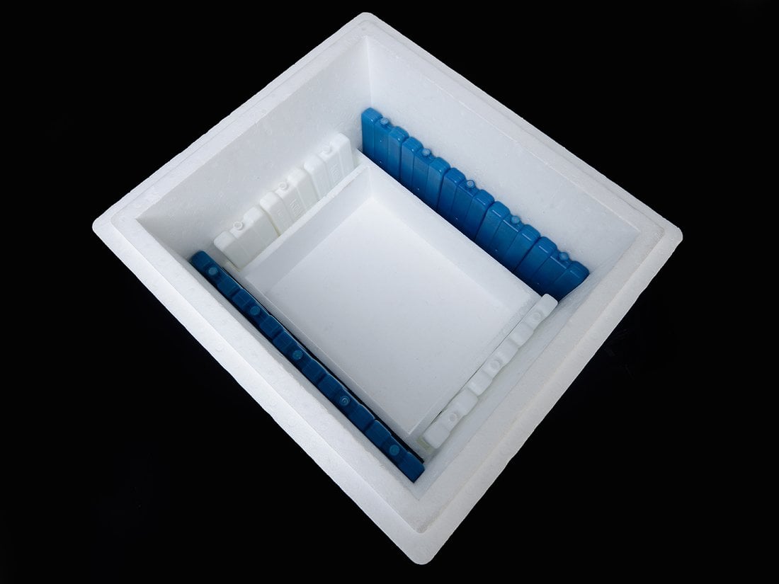 Mavi renkli plastik buz aküleri, kargo dahil olarak gönderilmektedir.