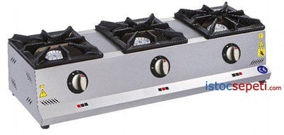 Doğalgaz uyumlu set üstü mini ocaklardan 3 gözlü ocak modelidir. Tezgah üstünde kullanabileceğiniz Ce belgeli gazlı ocak kaliteli ve uzun ömürlü bir makinedir. Sanayi tipi mini ocakların tek gözlüsü, iki gözlüsü üç gözlüsü ve dört gözlüsü bulunmaktadır. Tüplü veya doğalgazlı olarak ayrı üretilen bu ocakları sanayi mutfak adresimizden temin edebilirsiniz.