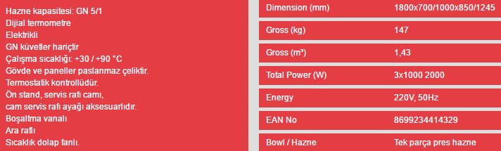 Benmari altı sıcak dolabı bulunan ürün çeşitlerinden birisi olan ürün, 5 havuzlu olarak tasarlanmıştır.