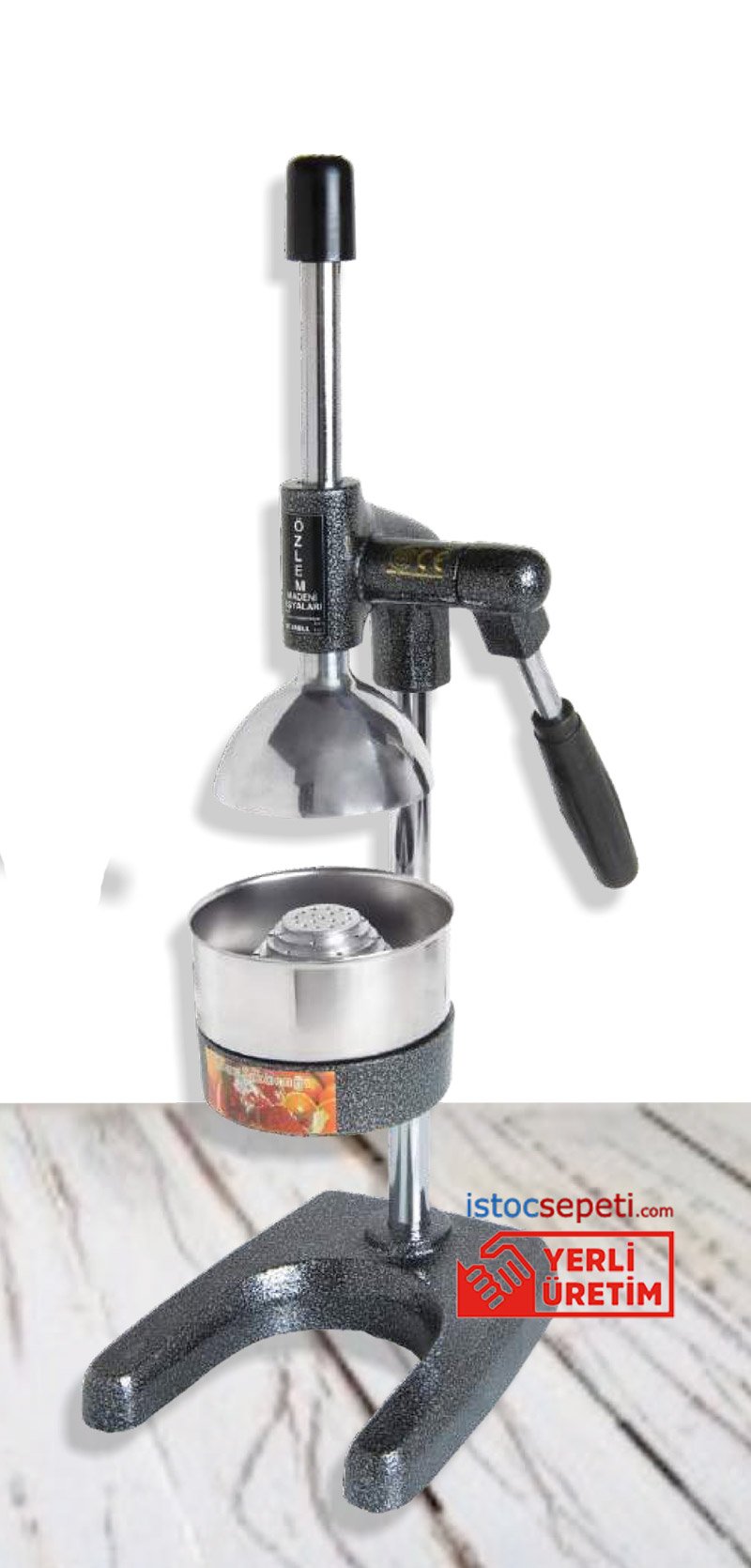 Meyve presleri arasında kaliteli ve uzun ömürlü nar ve narenciye sıkacağı olarak bilinen Özlem Madeni Eşyaların üretimi olan bu meyve presi, uygun fiyat ve yüksek kalitesiyle hem evde hem de iş yerinizde kullanabileceğiniz profesyonel bir meyve sıkacağı modelidir. Piyasadaki yüksek fiyatlı döküm meyve sıkacaklarına oranla aynı kalite ve uzun yıllar kullanım ömrü ile kullanıcılarının çok eskiden beri ilk sıralarda tercih ettiği bir meyve presi makinesidir.