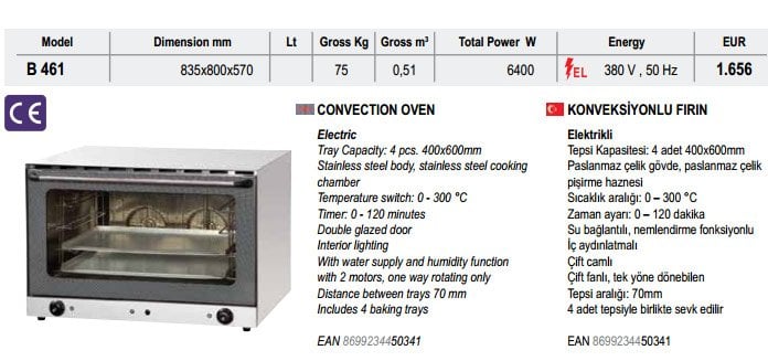 KONVEKSİYONLU FIRIN B460