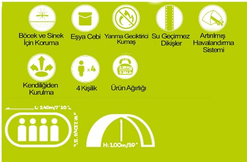 Dış Çadır: 190T Polyester PU2000mm kaplı