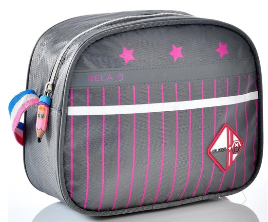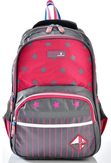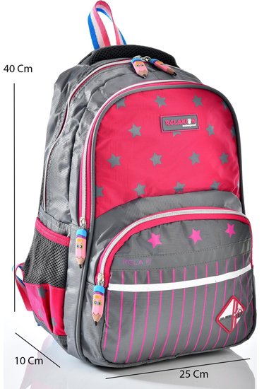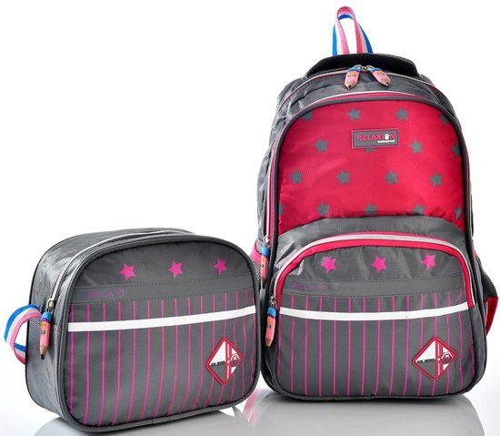 Relaxion 1320 Okul Sırt Çantası Beslenmeli Takım Gri Pembe
