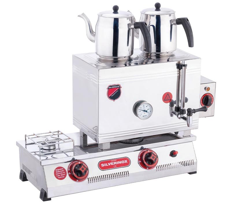 SilverInox 40 Model Ekonomik 2 Demlikli Çay Ocağı Çift Taban 28 L Elektrikli + Doğalgazlı