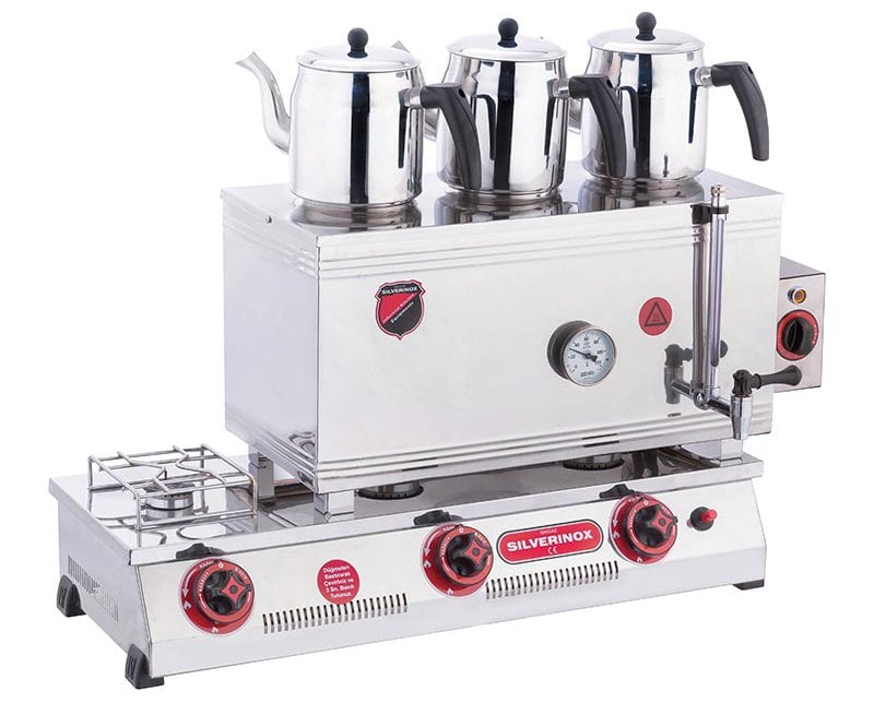 SilverInox 60 Model Kaynaklı 3 Demlikli Çay Ocağı Çift Taban 33 L Elektrikli + Doğalgazlı