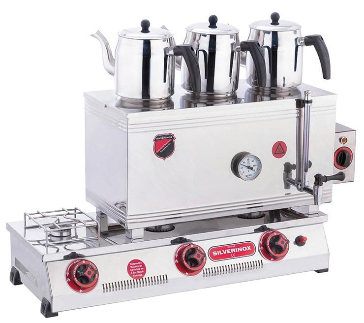 SilverInox 60 Model Kaynaklı Çay Ocağı Çift Taban 3 Demlikli 33 L Doğalgazlı