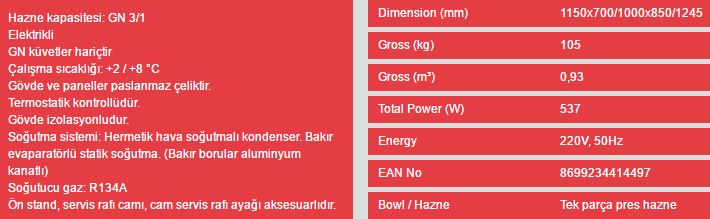 3 haznesi ile soğuk yiyeceklerin servisinde kullanılan ürün tamamen paslanmaz çelik yapıya sahiptir.