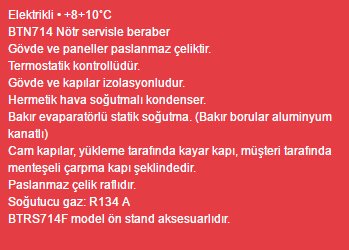 Elektrik bağlantısı yapılmadığı sürece de nötr dolap şeklinde kullanılabilen kabin, özellikle pasta tarzı yiyeceklerin saklanmasında kolaylık sunmaktadır.
