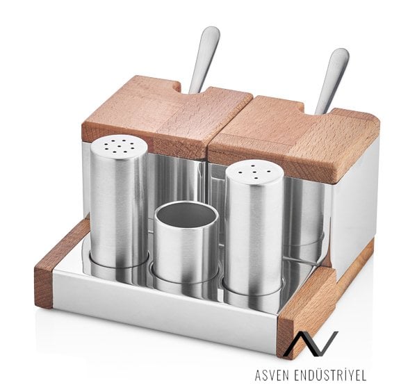 Baharatlık lüks model olarak üretilmiş, şık restoran cafe veya lokanta gibi mekanlarda kullanıma uygun set halindedir.